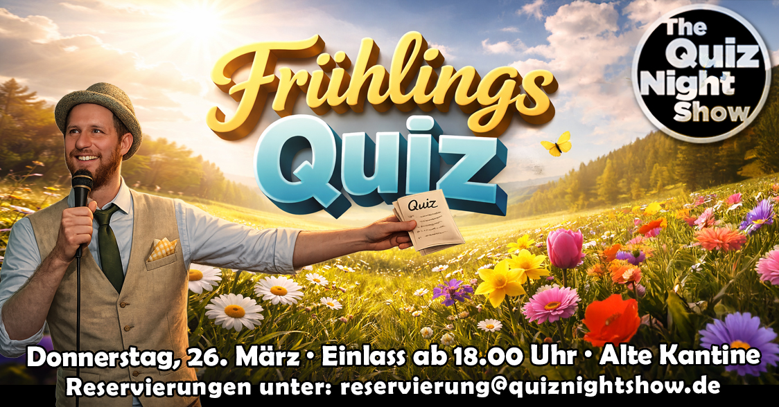 📝 – Eintritt + Tischreservierungen = 10 € pro Person. Anfragen via E-Mail an: reservierung@quiznightshow.de (Teilnehmeranzahl und Datum angeben!)